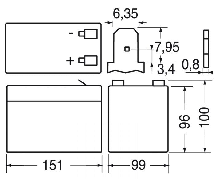 Batteria al piombo Energy Safe 12V 12AH Deep Cycle misure 151x99x100H mm. Morsetti faston 6,3 mm. Pronta all'uso.