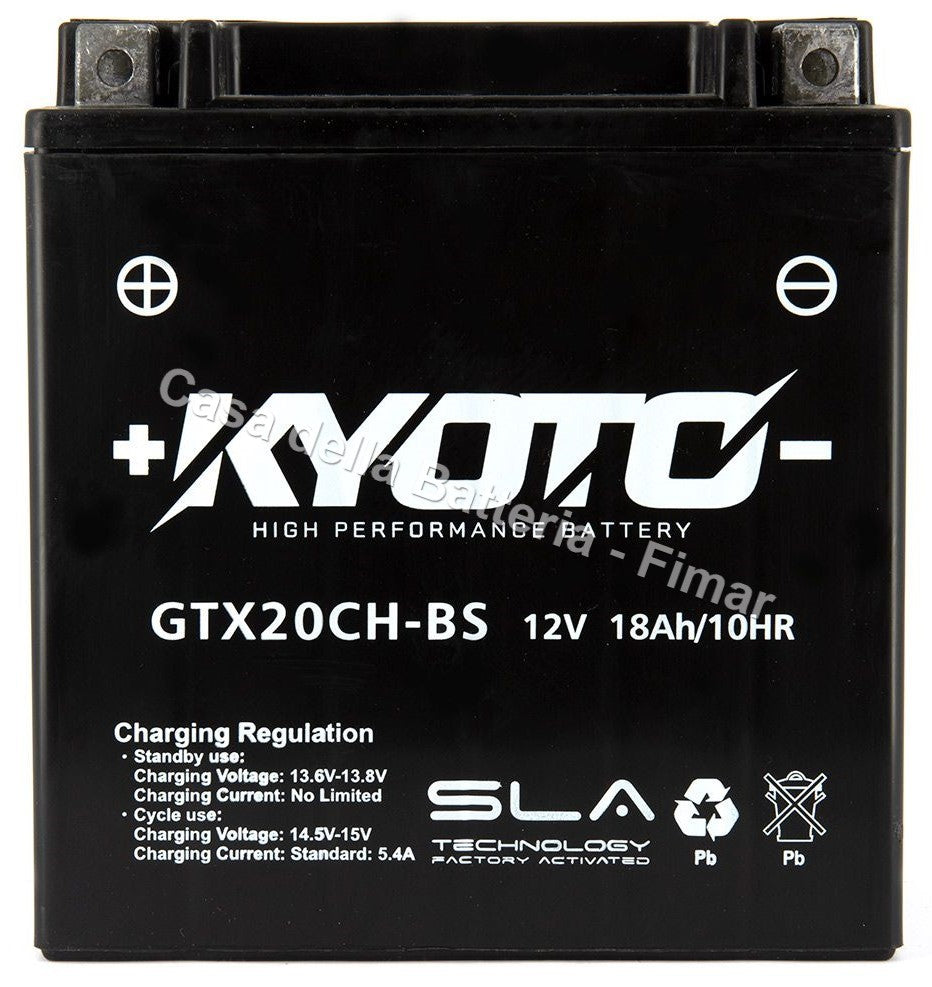 Batteria moto Kyoto YTX20CH-BS sx sigillata senza manutenzione. Misure 152x88x163H mm.